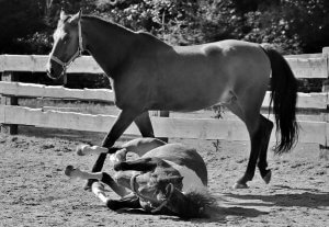 Zwischenzeitlich ist Ginger um einiges gewachsen und ein richtiger Rotzlöffel. Mittlerweile beherrscht sie das Fohlen-ABC und lernt tüchtig bei der Bodenarbeit. Im Herbst 2017 begann für sie der ernst des Pferdelebens. Die Ausbildung zum Reitpferd. Zu Beginn wurde mit ihr fleißig der Umgang mit Sattel und Trense geübt, wobei sie diese Hürde mit Bravour meisterte. Mittlerweile ist sie schon eingeritten und kennt das Reitergewicht. Dabei stellt sie sich immer lieb und lernwillig an. Mit Mut und Eigeninitiative macht sie sogar den großen Pferden schon etwas vor.