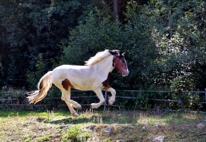 Gipsy ist eine Lewitzermixstute mit einem Stockmaß von 1,45m. Sie wurde am 3. Februar 2006 geboren und ist seit 17. November 2012 auf der Finkenmühle zu Hause. Als Longenpferd dürfen sowohl die großen, als auch die kleinen Reiter auf ihr liebevoll das Reiten lernen. Auch wenn sie manchmal eine kleine Zicke und sehr gerne mal faul ist, wird sie von allen Kindern geliebt. Gerne lässt sie sich von unseren Reitern ausgiebig verwöhnen sei es beim Putzen oder Streicheln.