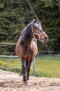 Charly ist seit Juni 2022 bei uns und ist sehr beliebt bei den Kindern, allerdings ist er eher etwas für fortgeschrittene Reiter, da er gerne ein zügigeres Tempo hinlegt. Er ist ein kleiner Morgenmuffel, aber er liebt Streicheleinheiten.