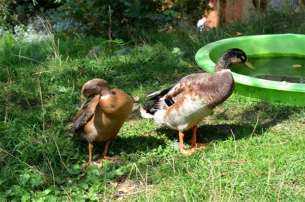 Seit 2014 wohnt ein Laufentenpaar bei uns. 2016 gab es Nachwuchs, jetzt sind sie zu sechst. Ihre Leibspeise sind Schnecken.